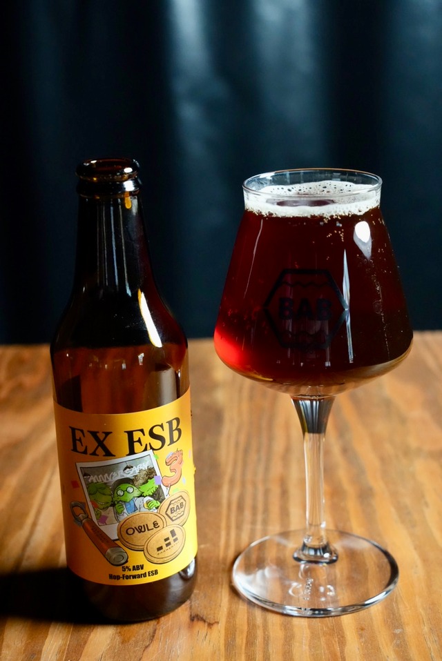 EX ESB 甘香ばしさはそのまま、後口だけ軽く。DHのひと手間。 ブランド:Beer Again Brewing 商品名:EX ESB スタイル:Extra Special Bitter(ESB) 容量:330ml / 15.5L ABV:5.0% IBU:20.9 CO2:2.34 vols ロット:Beer Again Brewing 3周年記念 ※BC Beer Trading 10周年記念ビール「Dusk」と同一モルト使用 PROFILE: Beer Again Brewing 3周年記念として仕込んだ「EX ESB」は、BC Beer Trading 10周年記念ビール「Dusk」のモルトを使い、2番麦汁で仕込んだESBです。 狙ったのは、ESBらしい ビスケット/トースト/キャラメルの甘香ばしさと、日常で杯が進む軽やかさの両立。FG 1.028でボディはしっかり残しつつ、飲み口は重くしないバランスに着地しています。 今回のドライホップはKrush(Cryo)を“柑橘を主張させる”ためではなく、モルトの甘香ばしさの“密度”を少しほどいて、飲み口を軽くするためのひと手間。 香りは控えめに、余韻の重心だけを少し上げるようにチューニングしています。結果として、モルティーなESBの良さはそのままに、口当たりがスッと抜けて、もう一口が自然に続く仕上がりになりました。 DESIGN INTENT: このEX ESBは、BC Beer Trading 10周年(Dusk)とBAB 3周年(EX ESB)1周年が重なったタイミングで、同一モルトを共有しながら“別の表情”を引き出す設計です。 強いストロングエールの骨格を支えたモルトを、2番麦汁で“日常のビター”へ落とし込むことで、派手さではなく 飲み飽きないモルト感を主役にしています。 この作り方は、昔からあるクラシックな パーティーガイル(Party-gyle) の考え方に近いアプローチ。 同じ仕込みから濃淡の異なる麦汁を使い分け、強いビールと日常のビールを作り分ける、そんな伝統的な発想を、周年の文脈に重ねています。 また本作は、奈良のFarmentry 西崎さんにも監修として入っていただき、レシピ/仕込み/発酵経過まで通してチェックを入れています。 RECIPE NOTES: Malts:Pale Ale / Teak / Rose Wood / Aroma Malt / Wheat Malt Light / Biscuit / Sour Grapes Malt Hops:Wakatu(Boil) Dry Hop:Krush(Cryo) Yeast:Mauri Classic Ale Process:Duskと同一モルト使用(2番麦汁) SERVICE: 温度帯:10〜13℃(モルトの香りを立たせつつ、飲み口が重くなりにくい) 用途:食中/夕方の一杯/モルト系の提案枠 顧客帯:モルト好き/ビター・ブラウン好き/派手すぎない一杯を探している層