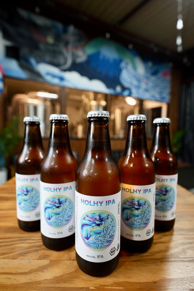 HOLHY IPA ~グレープフルーツとパッションが弾ける、キレのあるアメリカンIPA~ ブランド:Beer Again Brewing 商品名:HOLHY IPA スタイル:American IPA 容量:330ml ABV:6.0% IBU:ミディアム CO2:2.56 vols ロット:2nd Batch(Lot 2) 賞味期限:2026年8月24日(要冷蔵) PROFILE: HOLHY IPAは、ホップの立体感を主軸に設計したアメリカンIPA。 Galaxy、Citra、Idaho 7、Mosaicを大胆にドライホップ。 柑橘、レモンライム、熟れたトロピカルフルーツのアロマが一気に立ち上がります。 しっかりとホップを効かせながらも、 最終比重は切らせ、6%とは思えない軽快さ。 CO2は2.56 volsに設定し、シャープでキレのあるフィニッシュに仕上げました。 モルト構成にはフレークドウィートとフレークドオーツを使用。 厚みを出すためではなく、ホップの広がりをなめらかに支えるための設計。 クリアな外観の中に、ジューシーな質感を忍ばせています。 酵母はクリーンな発酵でホップの輪郭を引き立てる設計。 主役はあくまでホップ。 DESIGN INTENT: このビールは、壁画アーティストHohly氏とのコラボレーション。 ラベルに描かれた双龍には意味があります。 一つは、富士山から流れる水流。 Beer Again Brewingは、富士山のバナジウム水を仕込み水に使用しています。 もう一つは、黒龍。 ブリュワリーのステンレス機材を象徴する存在。 自然の水と、金属のタンク。 二つの龍が交わる場所で、ビールが生まれる。 HOLHY IPAは、その象徴を液体で表現した一本です。 RECIPE NOTES: Malts:Extra Pale Ale / Wheat Malt / Flaked Wheat / Flaked Oats / Honey Malt / Sour Malt Hops:Columbus(Boil) Whirlpool:Citra / Galaxy Dry Hop:Galaxy / Citra / Idaho 7 / Mosaic Yeast:LalBrew Pomona SERVICE: 温度帯:8〜10℃(柑橘トップノートを強調) 用途:一杯目/アートイベント/サウナ後の一杯 顧客帯:アメリカンIPA好き/トロピカル系ファン/キレ重視の層