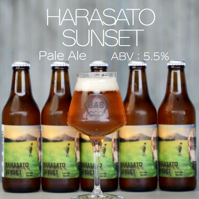 【HARASATO SUNSET】 — 富士山に沈む夕日をイメージした、やさしいストロベリーティーの香り — 御殿場の空がゆっくりと茜色に染まり、 富士山の稜線に太陽が沈むその瞬間。 「HARASATO SUNSET」は、そんな美しい時間を一杯のビールに閉じ込めました。 モルトはPale Aleをベースに、Amber、Honey Maltをブレンド。 柔らかな麦の甘みとキャラメルの香ばしさが、夕暮れの光のようにやさしく広がります。 ホップにはHBC630を使用。 ストロベリーティーのような上品な香りと、ほんのりベリーを思わせる風味が特徴です。 クリーンなUS-05酵母による発酵で、後味はすっきりとドライ。 焚き火のそばでゆっくりと過ごす時間や、 一日の終わりに心を整えるひとときにぴったりのペールエールです。 詳細情報: -スタイル: Pale Ale -ABV: 5.5% - モルト: Pale Malt,Amber,Cara Pils,Honey Malt,Sour Malt - ホップ: HBC630 - イースト: US-05 - JANコード: 4595644890040 - 賞味期限: 2026年5月6日