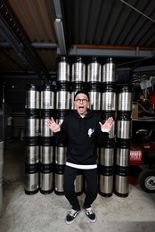 胸元には茜さん描き下ろしの「ホプスケ」イラスト、背中にはBeer Again Brewingのロゴを配置。